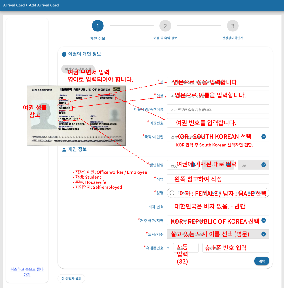 입국카드 작성 (개인 정보 입력)
