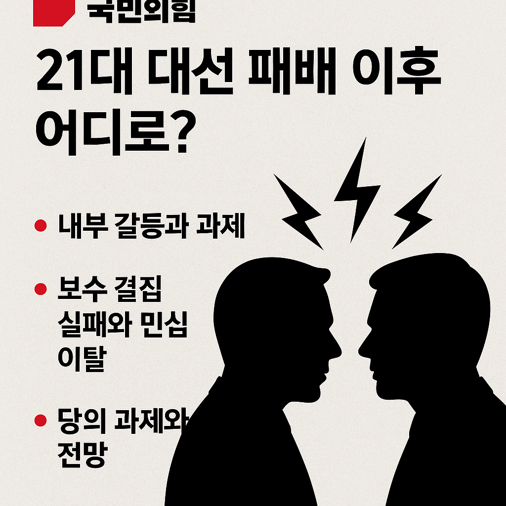 1. 대선 패배의 주요 원인국민의힘은 윤석열 전 대통령의 비상계엄 선언과 탄핵으로 인한 조기 대선이라는 악재 속에서 선거를 치렀다. 김문수 후보는 당내 경선을 통해 선출되었으나, 당 지도부의 혼란스러운 의사결정과 후보 교체 시도(한덕수 전 국무총리로의 교체 논란)는 보수 지지층의 이탈을 가속화했다. 특히, 이준석 개혁신당 후보와의 단일화 실패는 보수 표 분산으로 이어져 패배의 결정적 요인으로 분석된다. 여론조사에서도 이재명 후보가 중도층과 보수층 일부를 흡수하며 우위를 점한 반면, 김문수 후보는 친윤(친윤석열) 이미지로 인해 본선 경쟁력이 약했다.2. 당내 계파 갈등 심화대선 패배 이후 국민의힘 내부는 친윤계와 비윤계(특히 친한동훈계) 간 갈등이 극도로 심화되었다.친윤계: 윤석열 전 대통령의 탄핵에 반대..