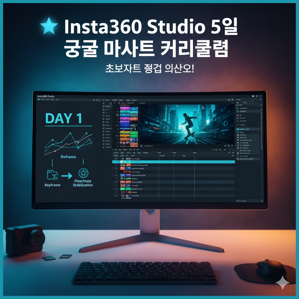목표: Insta360 Studio 인터페이스를 완벽히 이해하고, 360도 원본 파일을 오류 없이 불러와 자르고 내보낼 수 있다.